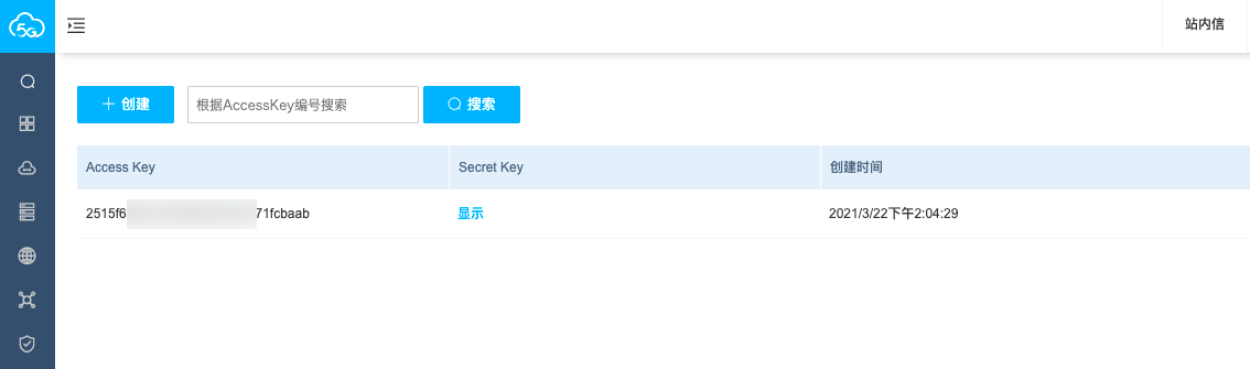 用户可在ZStack管理平台的[平台管理-Access Key]页面中生成新的Access Key信息或使用已有的Access Key。