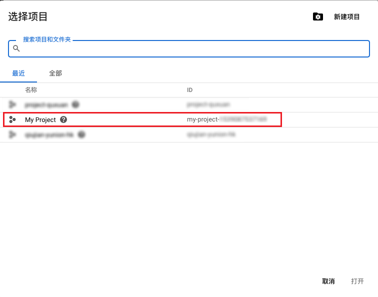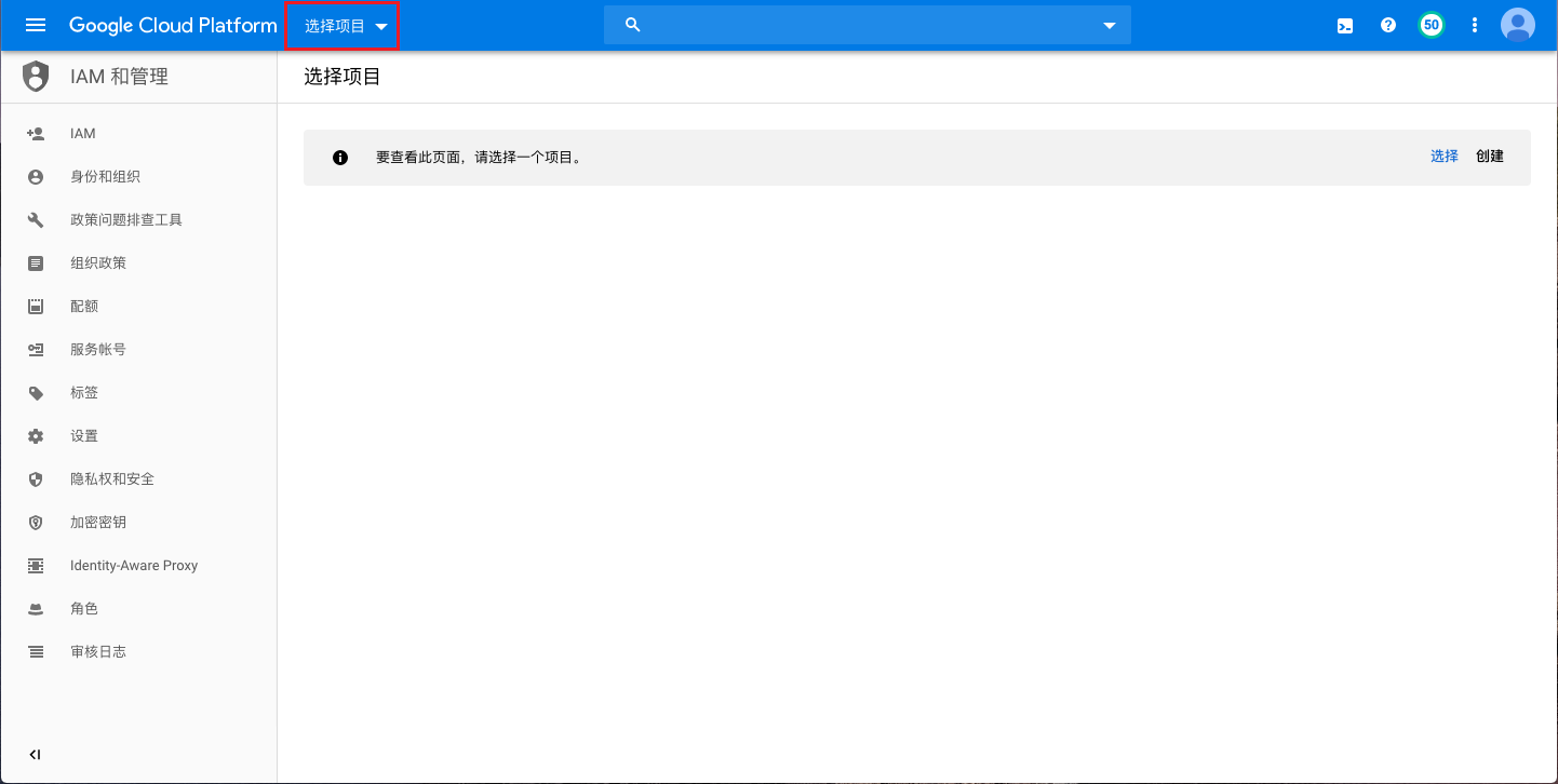打开“GCP Console中的IAM和管理-IAM页面”页面,选择其他需要纳管的项目。